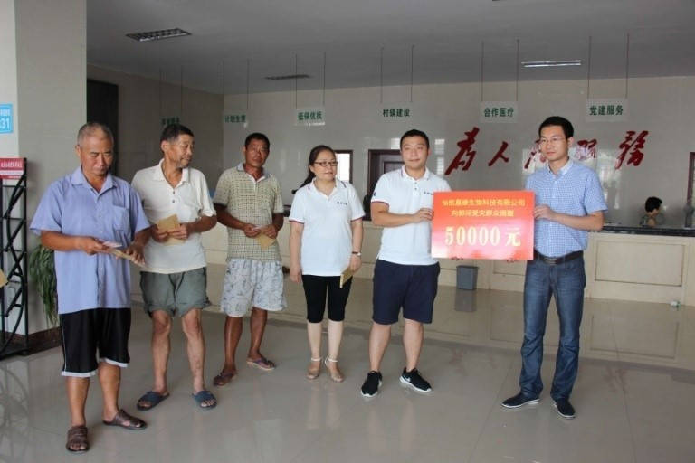 2016年8月11日上午,仙桃嘉康生物科技有限公司在郭河鎮(zhèn)便民服務中心向郭河鎮(zhèn)受災養(yǎng)殖戶進行捐款。今年5月份以來,湖北省經(jīng)歷了60年一遇的洪水災害,廣大水產(chǎn)養(yǎng)殖戶損失慘重,仙桃嘉康生物科技有限公司陳瑞文經(jīng)理、總經(jīng)辦李翠茹主任代表嘉康公司向郭河鎮(zhèn)受災養(yǎng)殖戶捐款人民幣五萬元,希望受災養(yǎng)殖戶積極展開生產(chǎn)自救,早日重建家園。