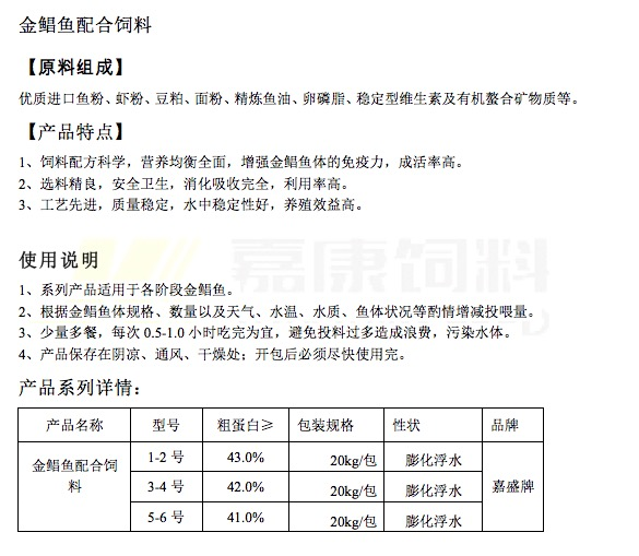 金鯧魚配合飼料