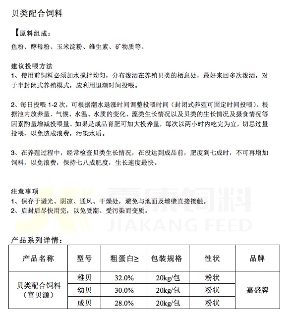 貝類(lèi)配合飼料